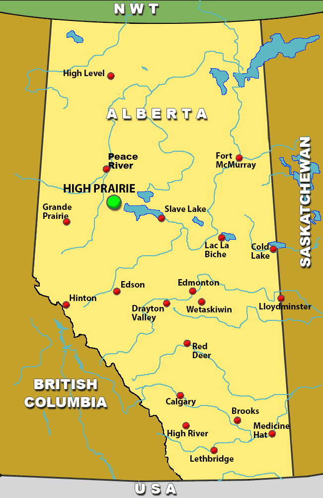 For those of you flying simulator other than MSFS2020, you can tune in the Swan Hill NDB and the Peace River VOR. High Prairie airport is along a line between Swan Hill and Peace River, approximately 60 miles DME from