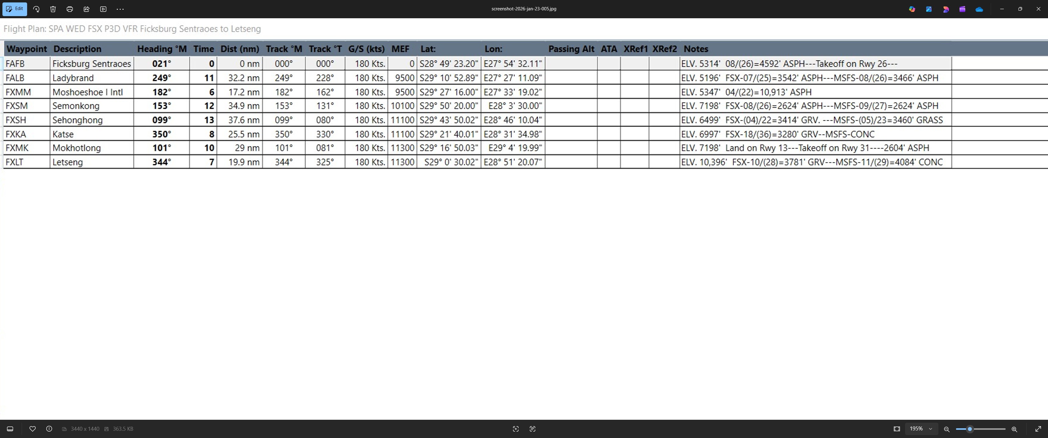 SPA WED MSFS VFR Ficksburg Sentraoes to Letseng.pln